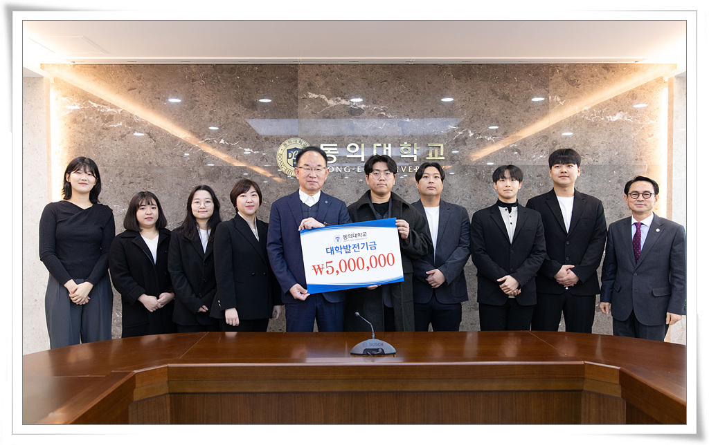 동의대 대학원 인공지능학과 김성희 주임교수(산학협력단장)와 소속 연구실 대학원생 및 학부생들이 연구실의 성과를 통해 각종 경진대회에서 수상한 상금 등으로 대학발전기금을 기탁했다.